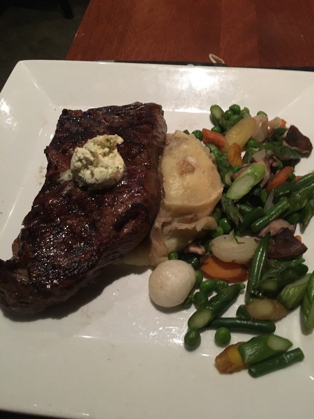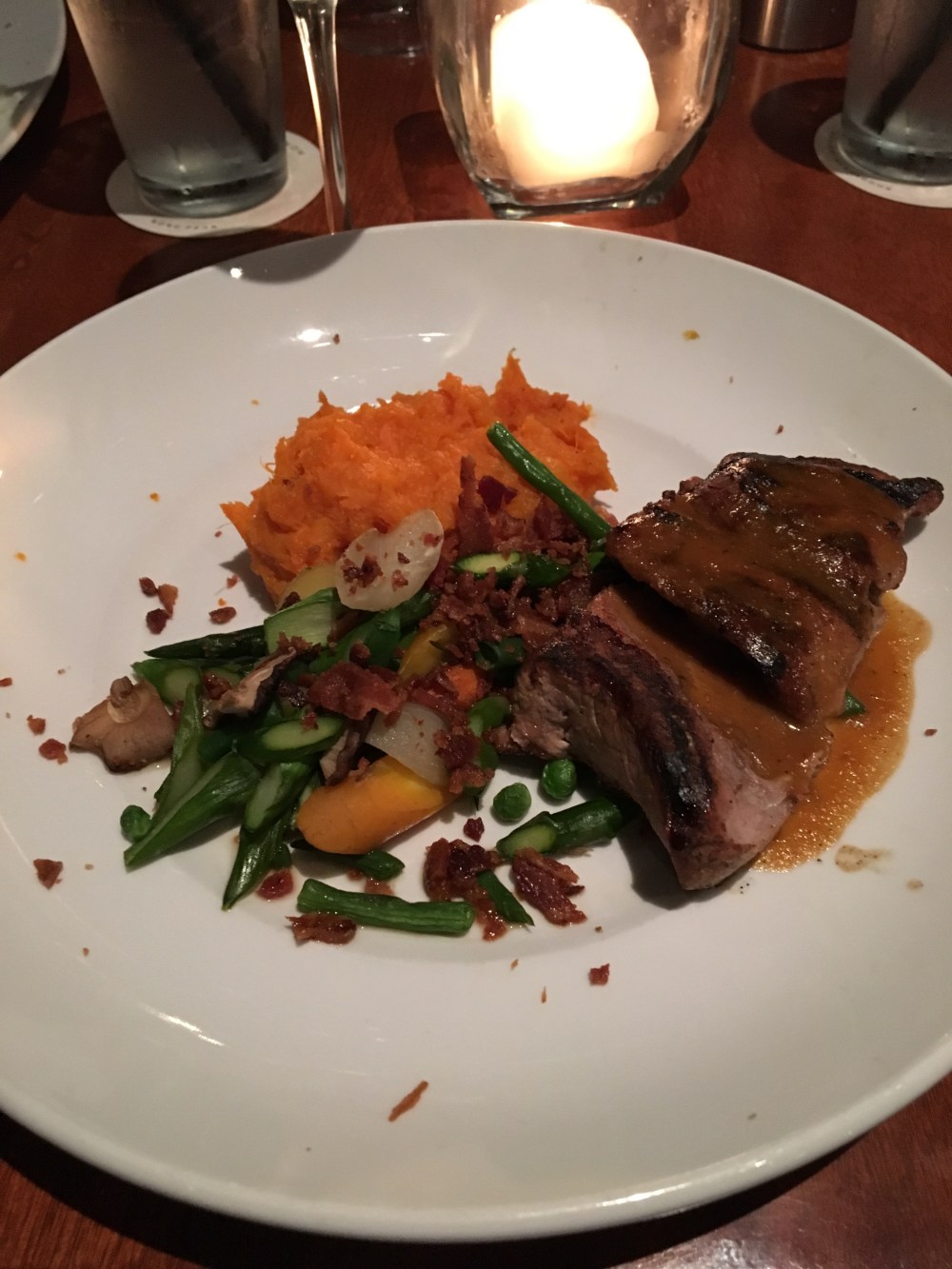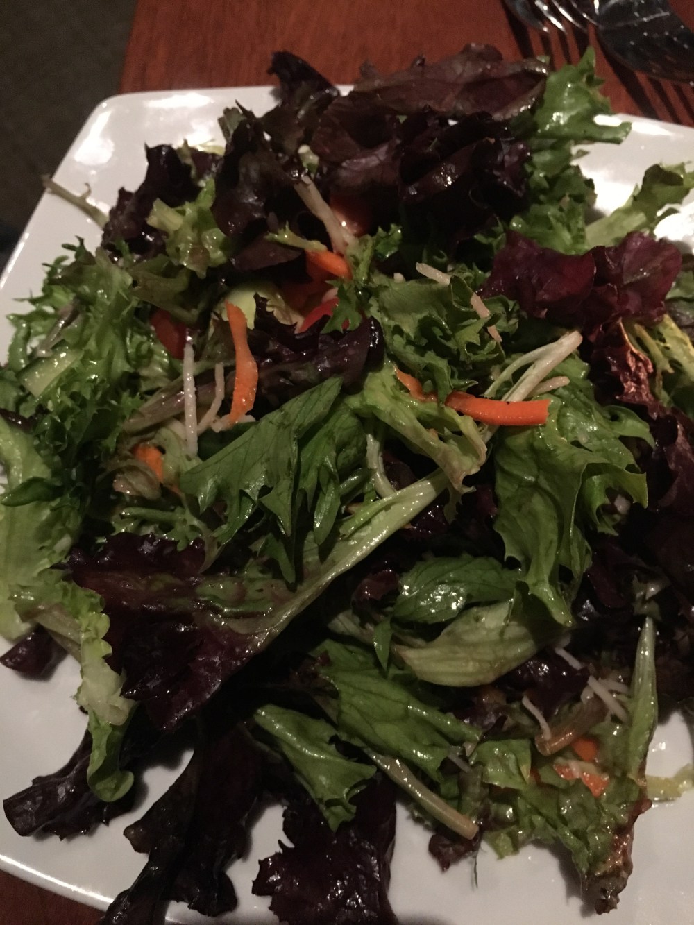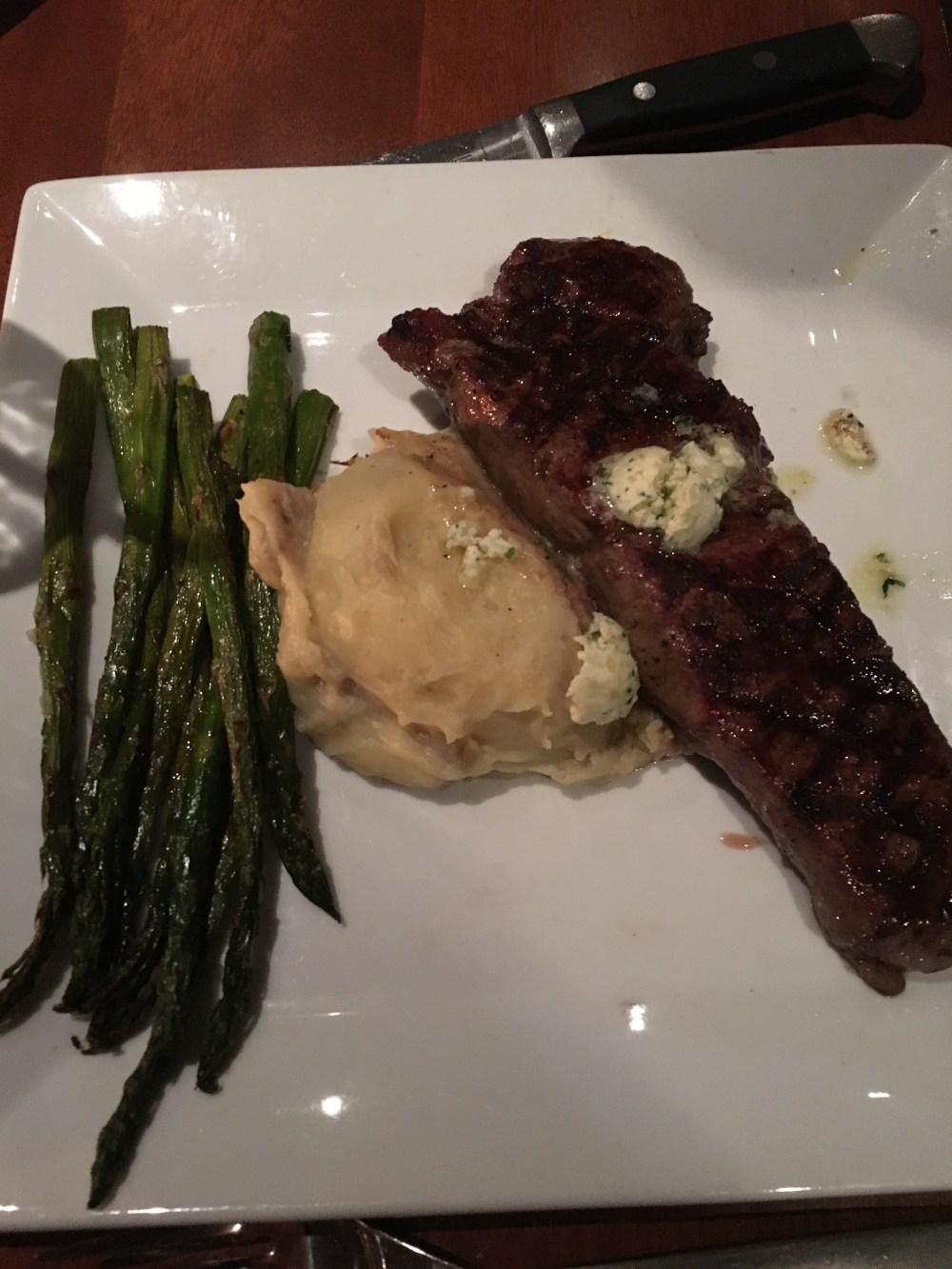 We went to Seasons 52 for one of our birthday dinners. We went to the Garden City location. We’ve eaten there several times but hadn’t visited in a while. We ate from their Spring 2017 menu which featured vegetables that are in season. We like this restaurant because it has a menu with fresh ingredients and most dishes are healthy. We had a 7:30 reservation but the restaurant was so busy that we waited 15 minutes to be seated. No “kid bias” being seated, so that was good. We began our meal with salads. When our main course arrived, it was wrong. They brought us the wrong steaks so half of us had our meals while the others had to wait 15 minutes more for the correct meals to arrive. This made the dinner a little stressful. The waitress apologized but didn’t make up for it with anything free of charge. We also saved some room for dessert since they’re only a few bites each.