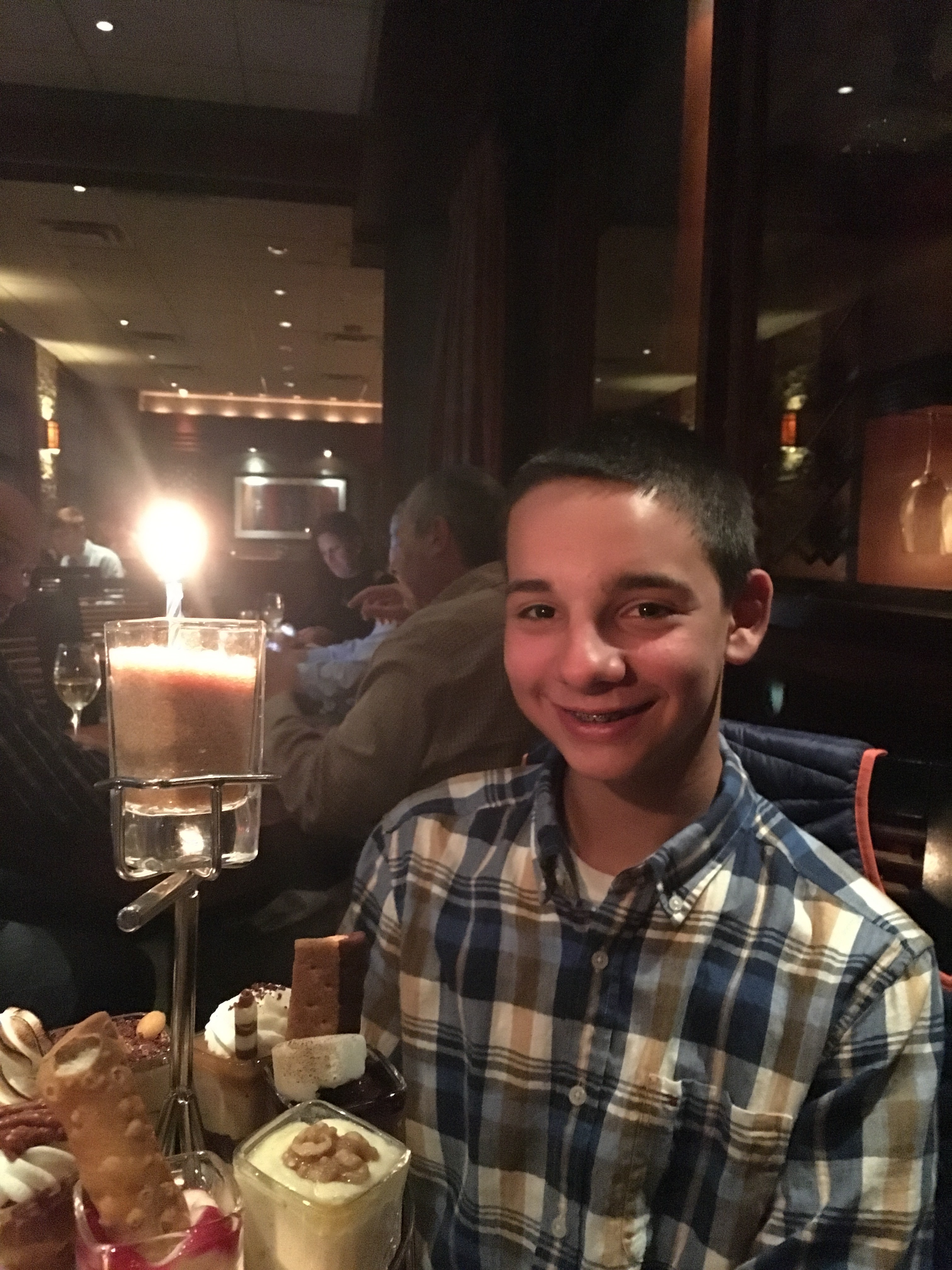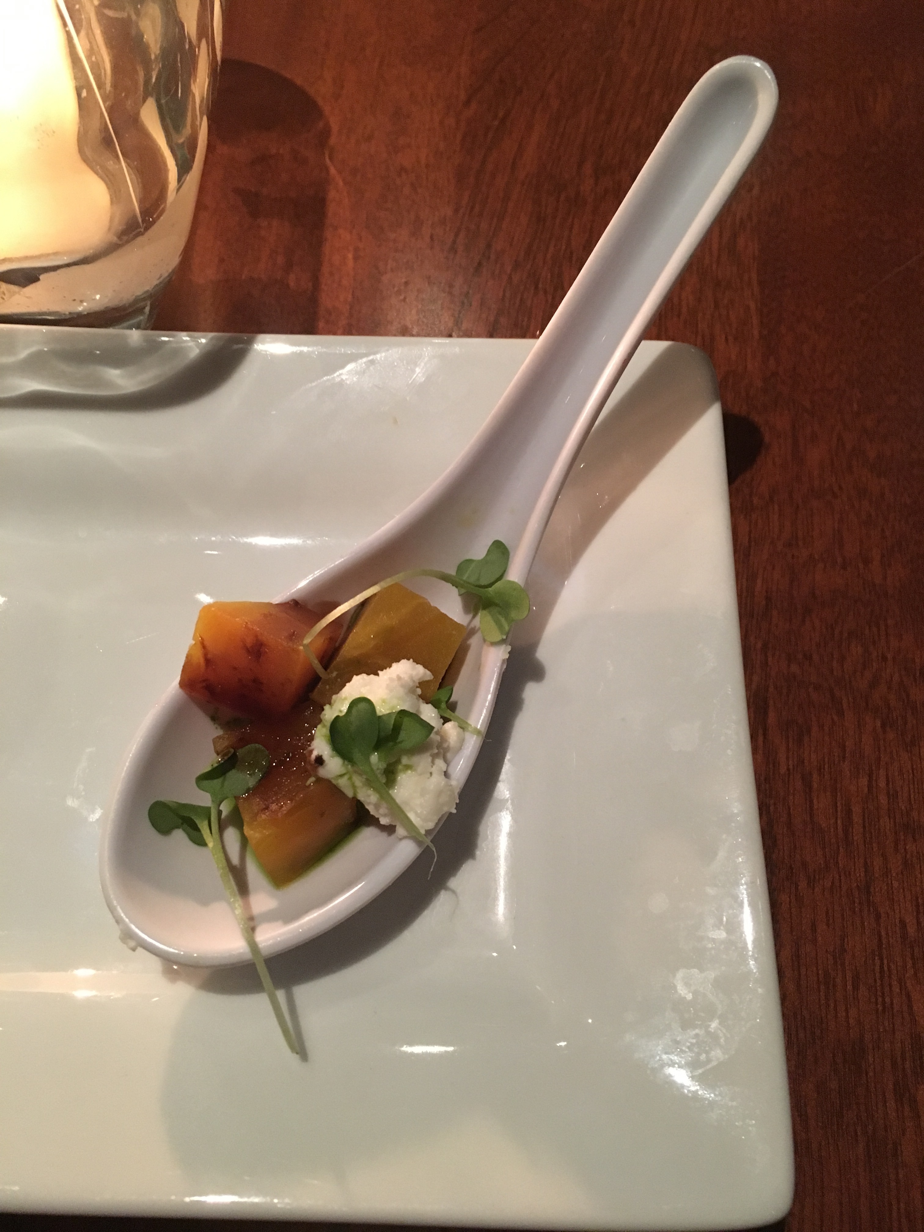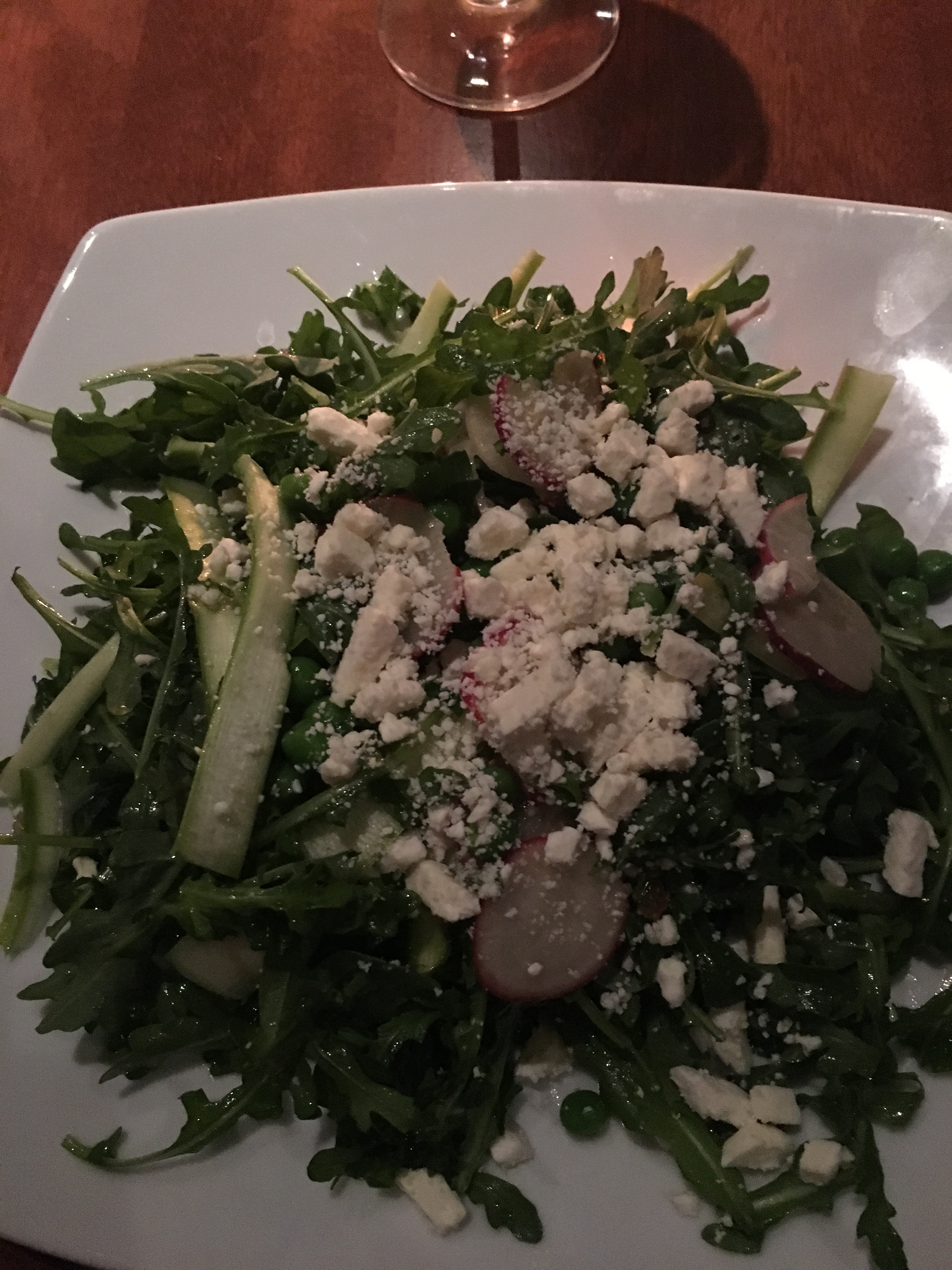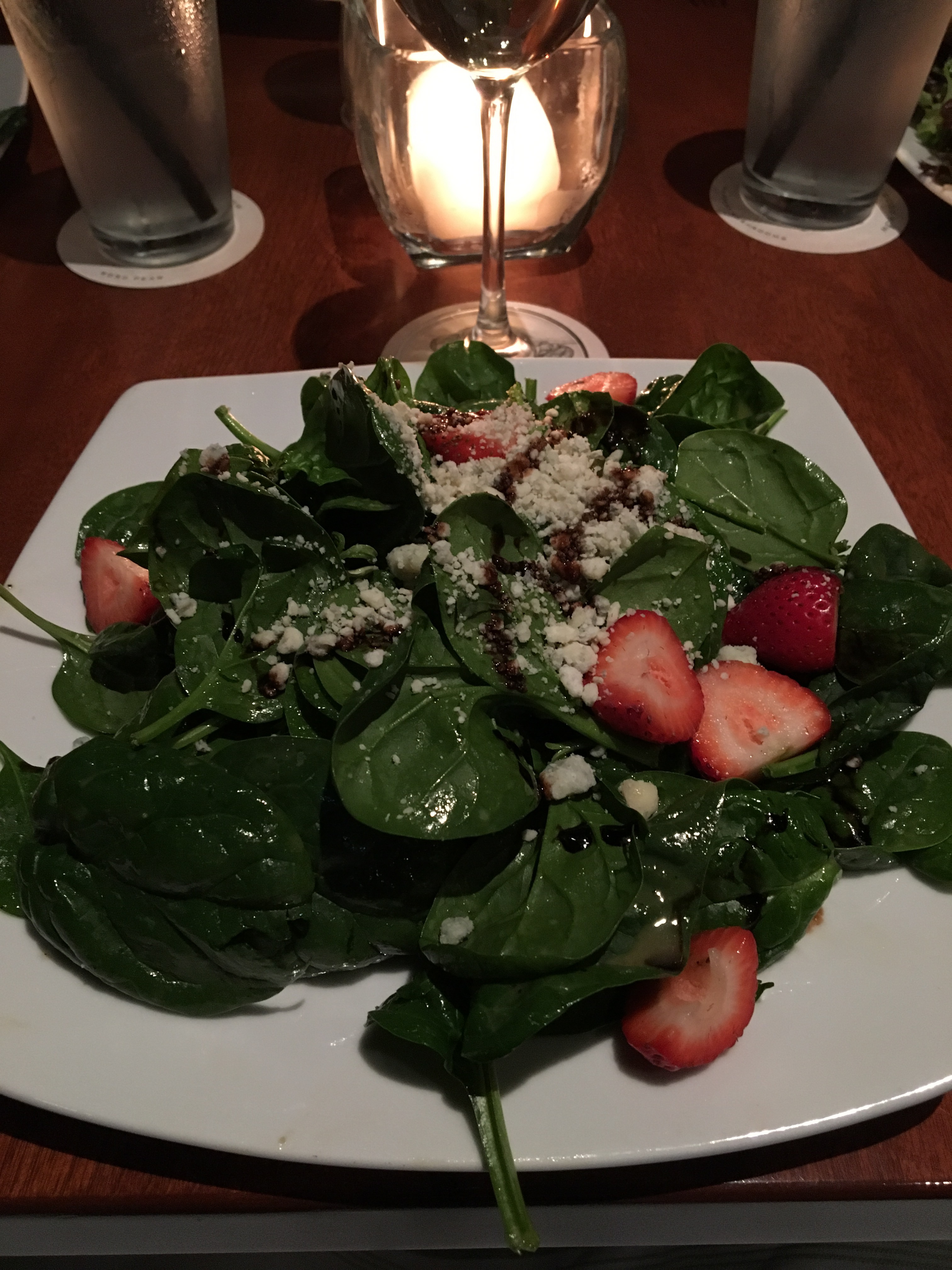 We went to Seasons 52 for one of our birthday dinners. We went to the Garden City location. We’ve eaten there several times but hadn’t visited in a while. We ate from their Spring 2017 menu which featured vegetables that are in season. We like this restaurant because it has a menu with fresh ingredients and most dishes are healthy. We had a 7:30 reservation but the restaurant was so busy that we waited 15 minutes to be seated. No “kid bias” being seated, so that was good. We began our meal with salads. When our main course arrived, it was wrong. They brought us the wrong steaks so half of us had our meals while the others had to wait 15 minutes more for the correct meals to arrive. This made the dinner a little stressful. The waitress apologized but didn’t make up for it with anything free of charge. We also saved some room for dessert since they’re only a few bites each.